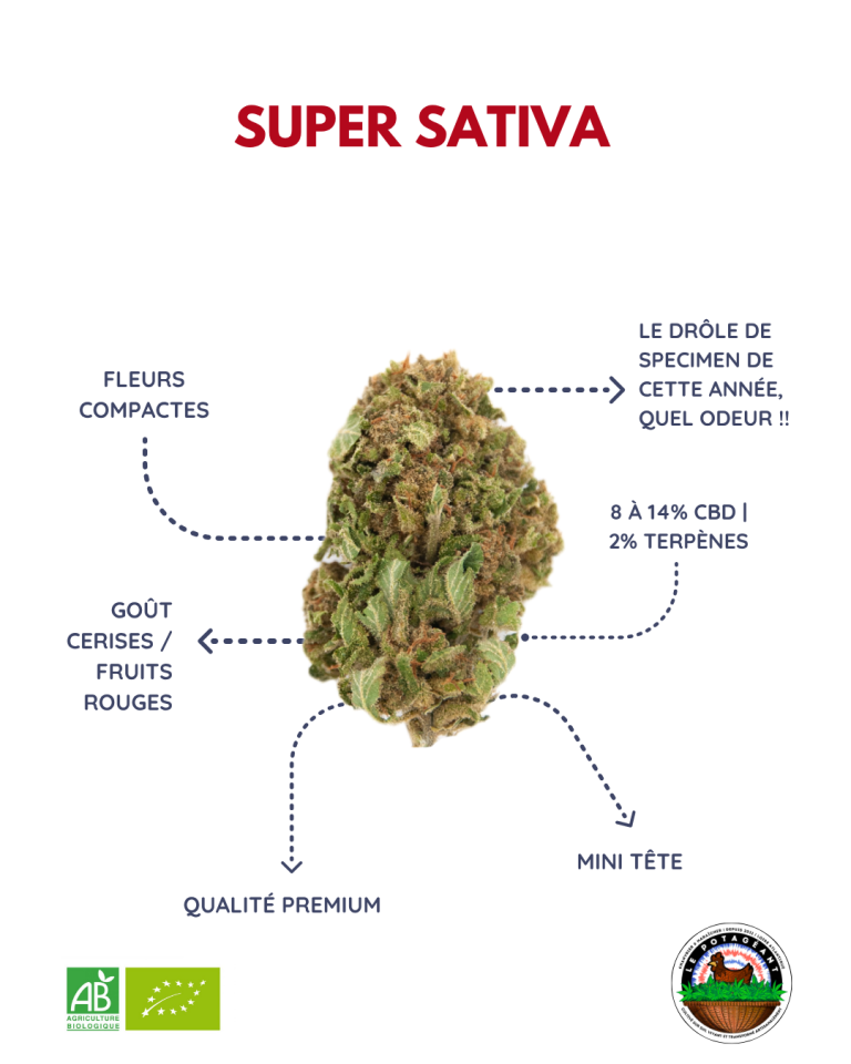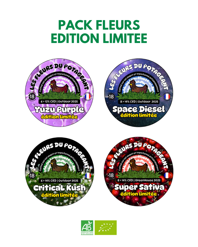 Le PotaGéant est une micro ferme qui se situe entre Nantes et Angers dans le Pays d’Ancenis (44). Nous produisons du chanvre à fleurs CBD depuis 2023 et des légumes depuis 2021. Deux passionnés : Baptiste et Michael pour gérer ce projet, de la production au design de l’étiquette ! En associant nos compétences et notre passion commune pour la plante nous voulons apporter une offre de fleurs et de produits CBD naturels, éthiques et locaux sur un marché où on ne sait pas toujours d’où ça vient et ce qu’il y a dedans. Nous cultivons selon les principes du maraîchage sur sol vivant, nous sommes labelisé agriculture biologique et essayons au maximum de limiter l’impact de nos produits (packaging biodégradable ou recyclable)